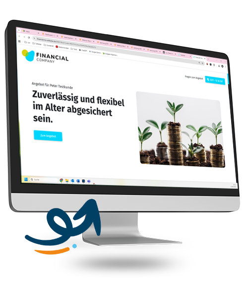 Klickt der Kunde auf den Link, öffnet sich die Angebots-Webseite. Diese beinhaltet Fakten zum Unternehmen, Vorteile einer Zusammenarbeit, FAQs, Angebote, was immer du willst. Der Kunde liest seinen Namen, wird mit seinem Thema abgeholt und fühlt sich geborgen.